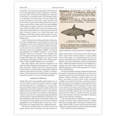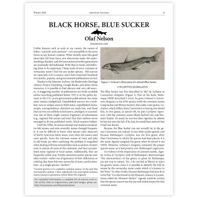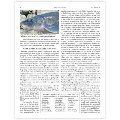My article on the history of the common names of the Blue Sucker (Cycleptus elongatus) appeared in the Winter 2015 issue of American Currents. It can also be read (with more images, updated information, and links to all the sources used (including downloads of most), at moxostoma.com/bluesuckernames.